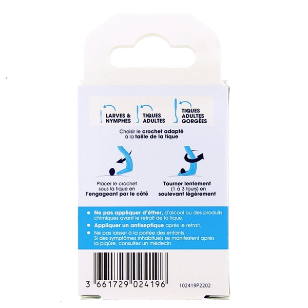 - 1 crochet de 5 cm : cette variante est conçue pour retirer les petites tiques,