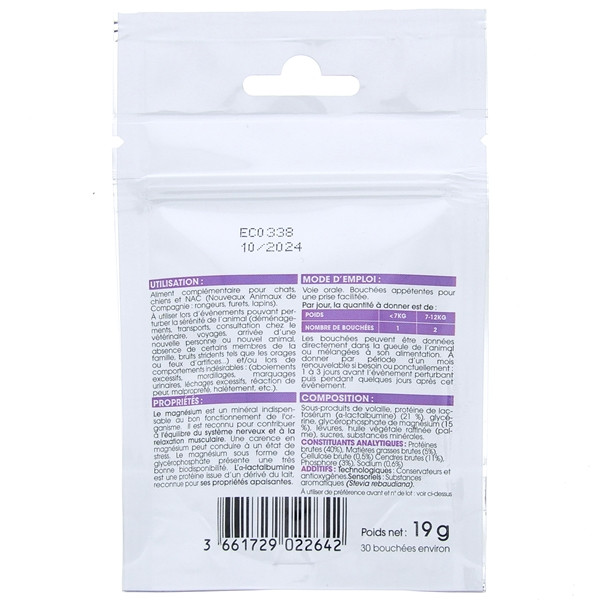 Il est donc essentiel de les accompagner de manière progressive et rassurante pour atténuer ces troubles comportementaux. Votre chien, chat ou NAC a-t-il perdu sa sérénité et/ou adopte divers gestes désagréables comme l’aboiement excessif, le mordillage… ? Découvrez les bouchées appétentes Biocanina Alphacalm Tasty. Ce sont des compléments alimentaires à base de magnésium et d’alpha-lactalbumine indiqués pour aider à la relaxation de votre animal de compagnie. Le magnésium contribue à l’équilibre du système nerveux et à la relaxation musculaire, tandis que l’alpha-lactalbumine, un dérivé de lait, possède des propriétés apaisantes.