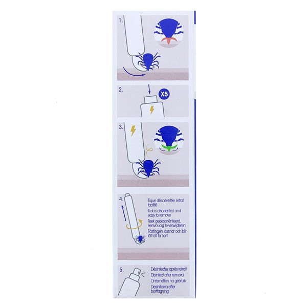 Placez le Tire-Tique Électrique Biocanina sur le côté de la tique puis enclenchez les décharges électriques en pressant 2 à 5 fois le bouton. Tournez le dispositif Biocanina dans le sens inverse des aiguilles d’une montre tout en le soulevant légèrement. Désinfectez l’endroit où se trouve la tique après son retrait avec ce Tire-Tique Biocanina.