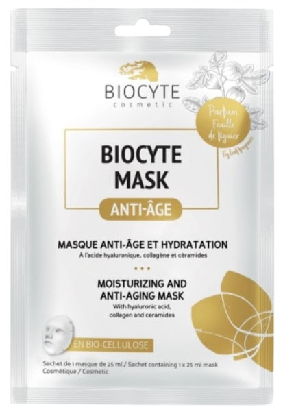 Biocyte Mask Anti-âge est un masque en bio-cellulose à usage unique qui va assurer l'hydratation, la densité et l'élasticité de la peau en agissant sur 3 éléments la constituant : l'acide hyaluronique, l'élastine et le collagène.