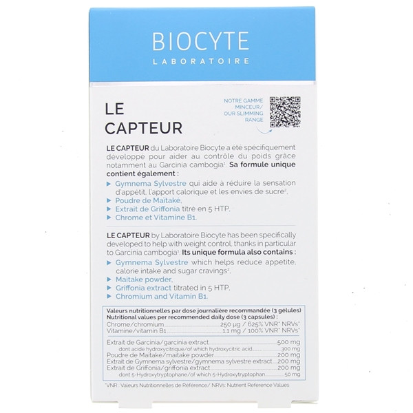Biocyte Le Capteur est un complément alimentaire minceur indiqué pour aider à contrôler le poids et réduire l'apport calorique.