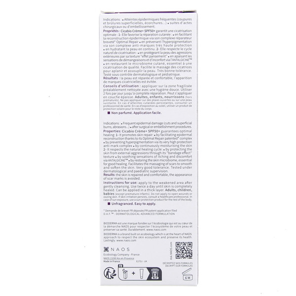 Cicabio Crème+ SPF50+ est un soin nouvelle génération ultra-réparateur apaisant destiné à restaurer la diversité du microbiome pour une belle cicatrice. L’utilisation de cette crème permet de réparer et hydrater en profondeur l’épiderme pour éviter les marques cicatricielles. Elle permet également d’apaiser les démangeaisons et les sensations d’inconfort.