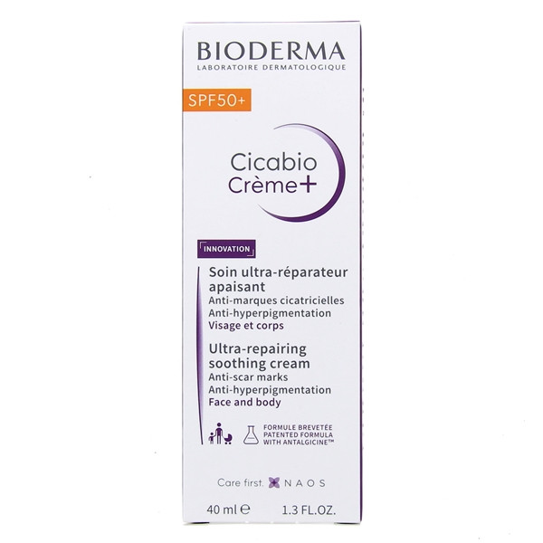 Cicabio Crème+ SPF50+ Soin Ultra-Réparateur Apaisant de Bioderma est un soin 2 en 1 qui répare et protège du soleil la peau. Cette crème pour le visage et le corps est anti-marques cicatricielles et anti-hyperpigmentation.