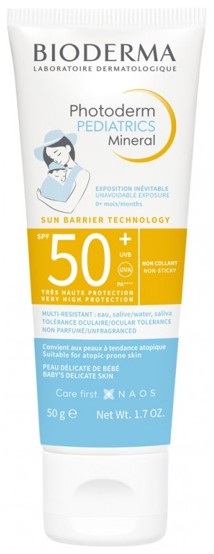 Photoderm Pediatrics Mineral SPF50+ de Bioderma est une protection solaire spécialement conçue pour la peau délicate des bébés de 0 à 36 mois. Multi-résistante, cette crème solaire offre une très haute protection 100 % minérale contre les UVB et UVA courts et longs. Elle convient aux peaux à tendance atopique.