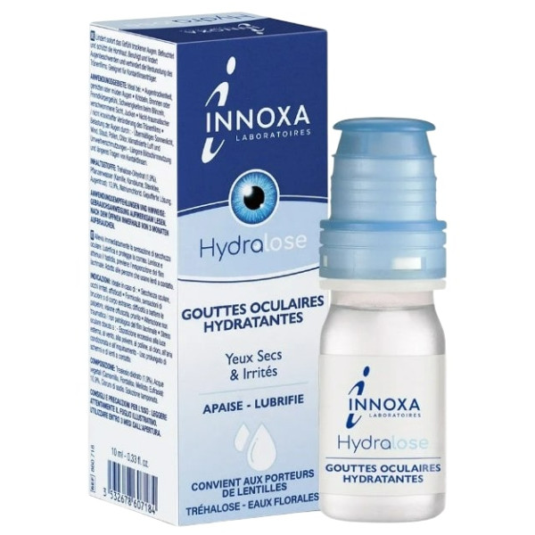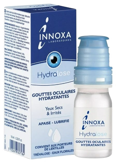 Innoxa Hydralose Gouttes Oculaires Hydratantes est une solution ophtalmique indiquée pour apaiser, hydrater et lubrifier les yeux secs et irrités.