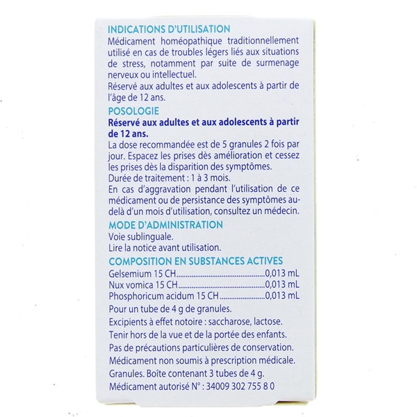 Le médicament homéopathique Zelaceo Granules du laboratoire Boiron est indiqué dans le traitement et la diminution des troubles légers liés au stress, notamment par la suite de surmenage nerveux ou intellectuel : épuisement, fatigue, trouble de l'humeur, difficultés de concentration.