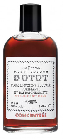 Conçue à base d'essences naturelles, l'eau de bouche concentrée Botot est préconisée pour purifier et rafraîchir votre haleine au quotidien.