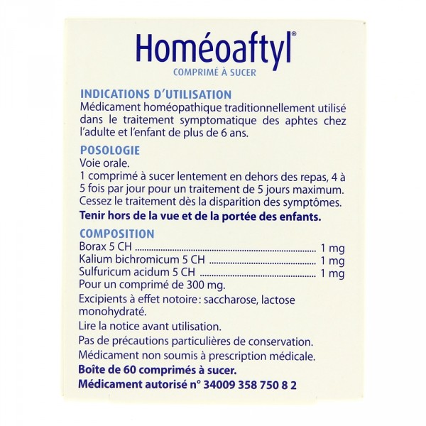 Homeoaftyl est un médicament homéopathique du laboratoire Boiron pour le traitement symptomatique des aphtes.