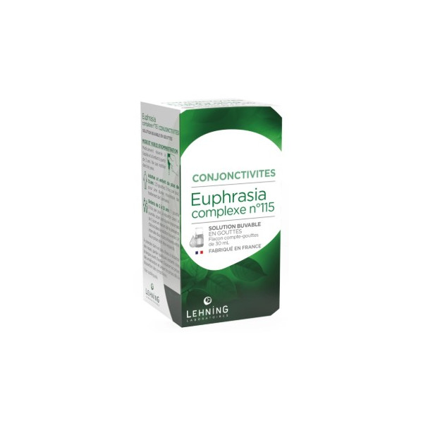 Le médicament homéopathique Euphrasia complexe n°115 Lehning est une solution buvable utilisée traditionnellement dans le soulagement des conjonctives.