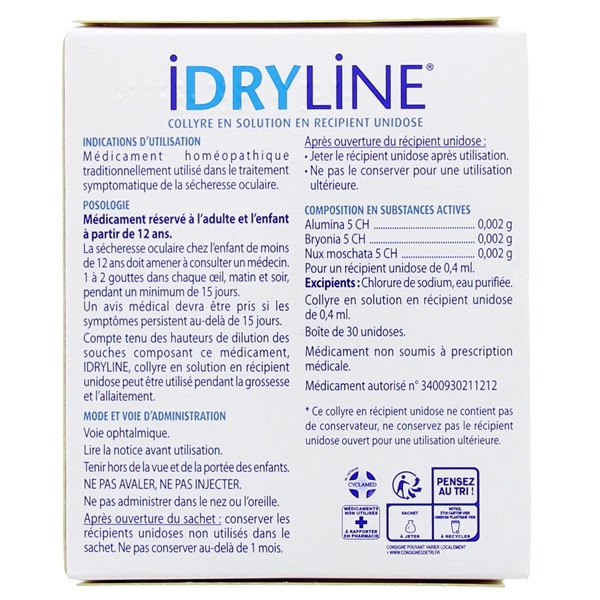 Le médicament homéopathique du laboratoire Boiron Idryline est indiqué en cas de sécheresse oculaire.