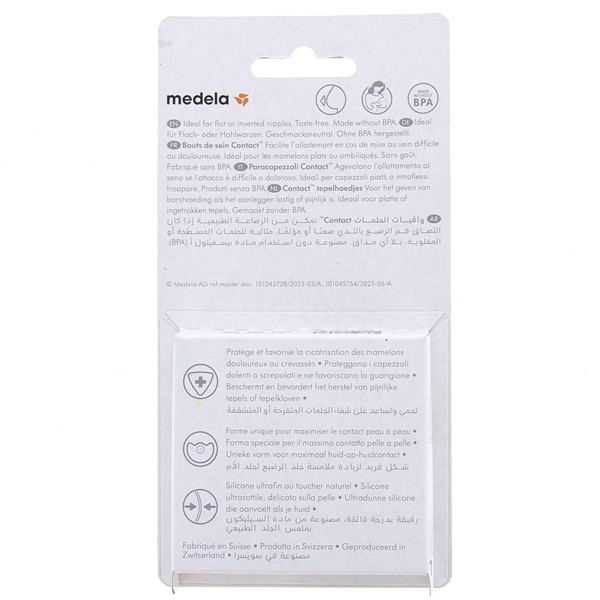 Le silicone qui compose les bouts de seins Contact de marque Medela protègent les seins crevassés et favorisent une tétée confortable.