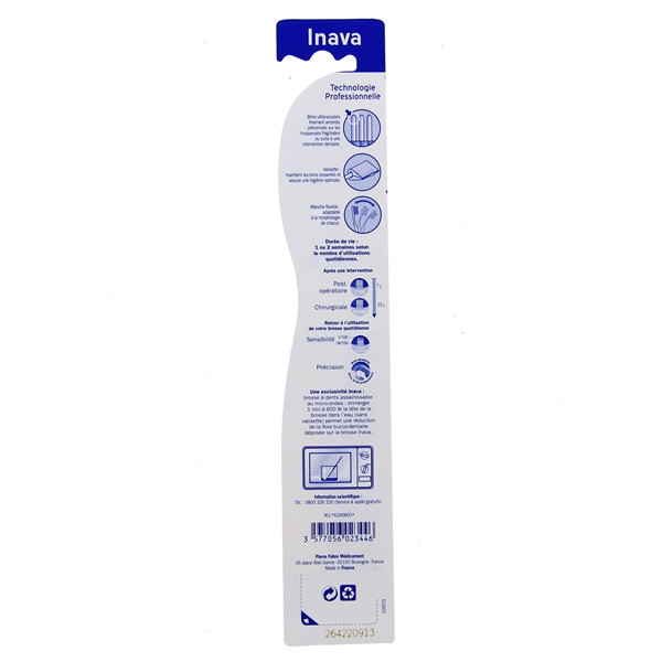La brosse à dents Post-opératoire de la marque Inava est conçue pour limiter au maximum le risque de saignement à la suite d'une opération chirurgicale en effectuant un brossage extrêmement doux.