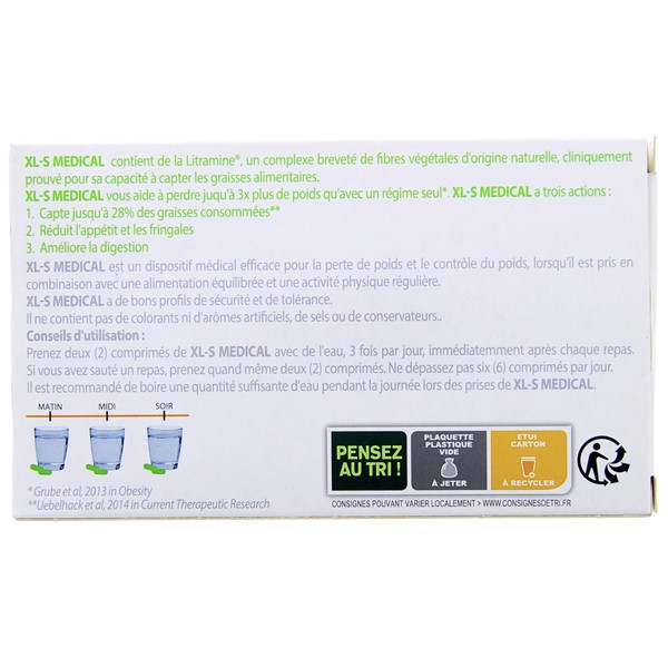 Avec XLS Medical capteur de graisses, vous pouvez perdre jusqu'à 3 fois plus de poids qu'avec un régime seul. Il est un très bon accompagnant dans votre objectif de perte de poids en complément d'une alimentation saine et équilibrée et d'une activité physique régulière.