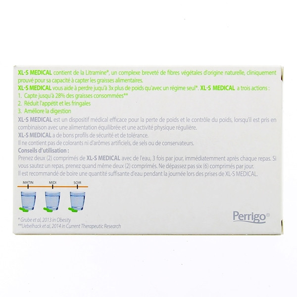Les comprimés XLS Medical capteurs de graisses sont recommandés pour contrôler le poids en captant efficacement les graisses venant de l'alimentation. Ils contiennent de la Litramine, un complexe breveté de fibres végétales d'origine naturelle.
