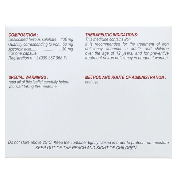 Ce médicament contient du fer, élément minéral essentiel au fonctionnement de l'organisme. Le fer est nécessaire à la formation de l'hémoglobine, contenue dans les globules rouges, qui assure le transport de l'oxygène dans le sang.
