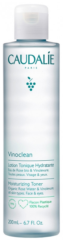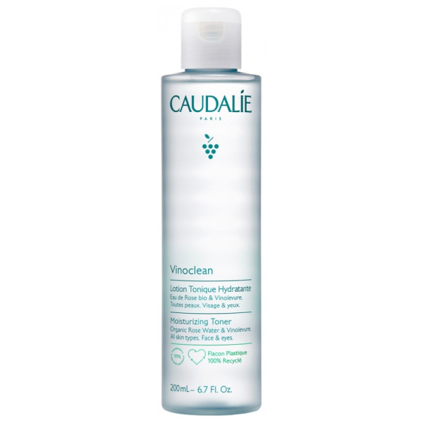 Vinoclean Lotion Tonique Hydratante de Caudalie est un soin à l'Eau de Rose bio et à la Vinolevure adapté à tous les types de peaux. Cette lotion élimine les dernières traces de maquillage du visage et des yeux, apporte de l'hydratation et tonifie la peau.