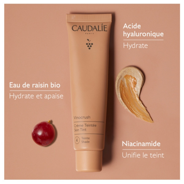 Êtes-vous à la recherche d’une base de maquillage qui prend soin de votre peau ? Nous vous proposons la crème teintée (Teinte n ° 4) Vinocrush de Caudalie. Il s’agit d’une base mi-soin mi-maquillage qui permet d’unifier votre teint tout en hydratant et illuminant votre peau tout au long de la journée.