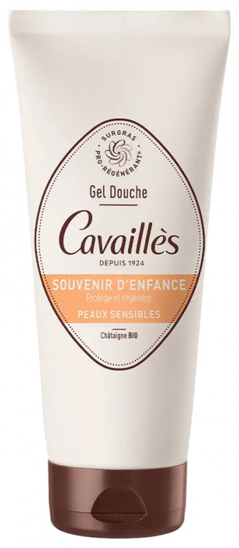 Le Gel Douche Souvenir d'Enfance de la marque Cavaillès a été spécialement formulé pour nettoyer, protéger et régénérer les peaux sensibles des adultes et des enfants dès l'âge de 1 an.