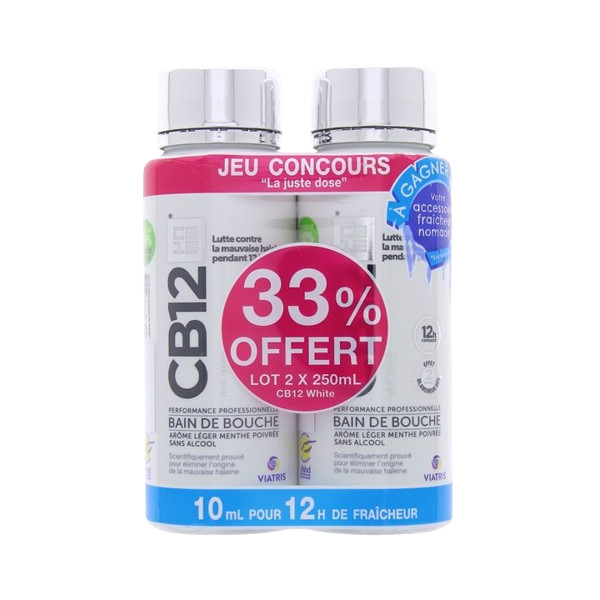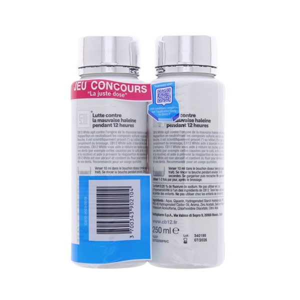 CB12 White Bain de bouche est un bain de bouche embarquant une formule brevetée neutralisant les mauvaises haleines. Particulièrement efficace, il agit sur les mauvaises odeurs pendant 12 heures au lieu de simplement les masquer.