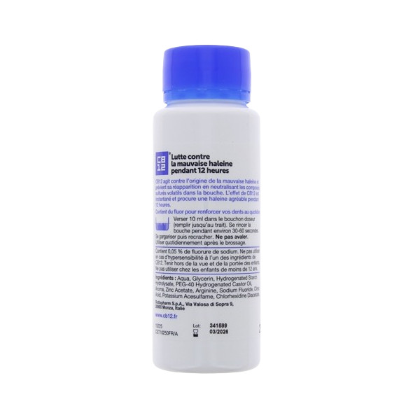 CB12 prévient et traite la mauvaise haleine (halitose) en neutralisant les composés sulfurés volatils dans la bouche. L'effet de CB12 est instantané et procure une haleine saine pendant 12 heures.