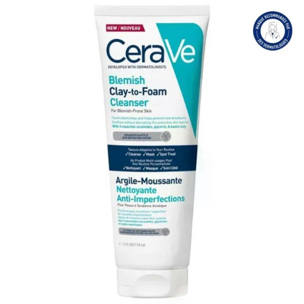 L’Argile-Moussante Nettoyante Anti-Imperfections 118ml de la marque CeraVe est un produit à multiples fonctions destiné aux peaux à tendance acnéique ou présentant des impuretés. Ce produit polyvalent a été élaboré en collaboration avec des scientifiques.