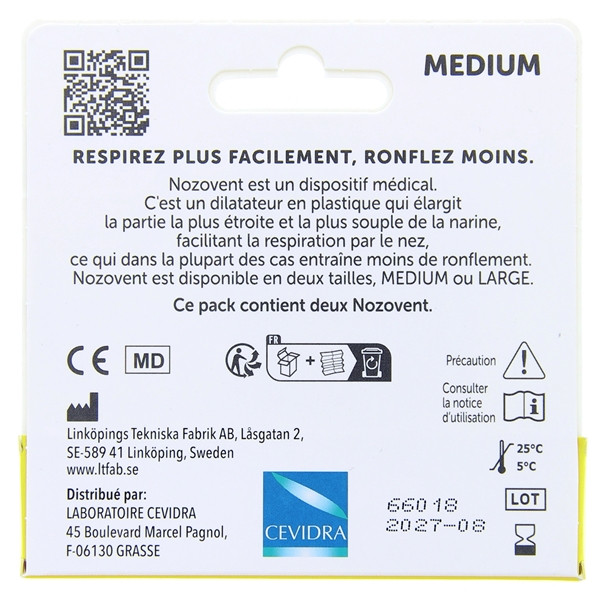 Recommandé par de nombreux spécialistes ORL, le Nozovent représente une solution adaptée aux personnes souffrant d’obstruction nasale, de déviation de la cloison ou de gêne respiratoire liée au rhume ou aux allergies.