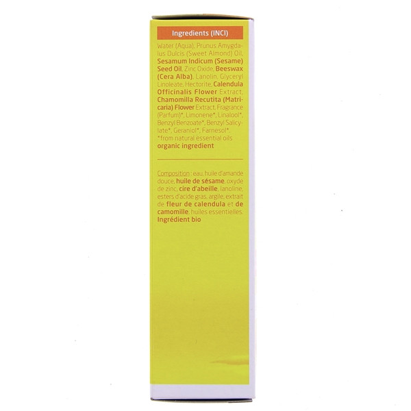 Water (Aqua), Prunus Amygdalus Dulcis (Sweet Almond) Oil, Sesamum Indicum (Sesame) Seed Oil, Zinc Oxide, Beeswax (Cera Alba), Lanolin, Glyceryl Linoleate, Hectorite, Calendula Officinalis Flower Extract, Chamomilla Recutita (Matricaria) Flower Extract, Fragrance (Parfum)*, Limonene*, Linalool*, Benzyl Benzoate*, Benzyl Salicylate*, Geraniol*, Farnesol*.