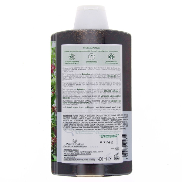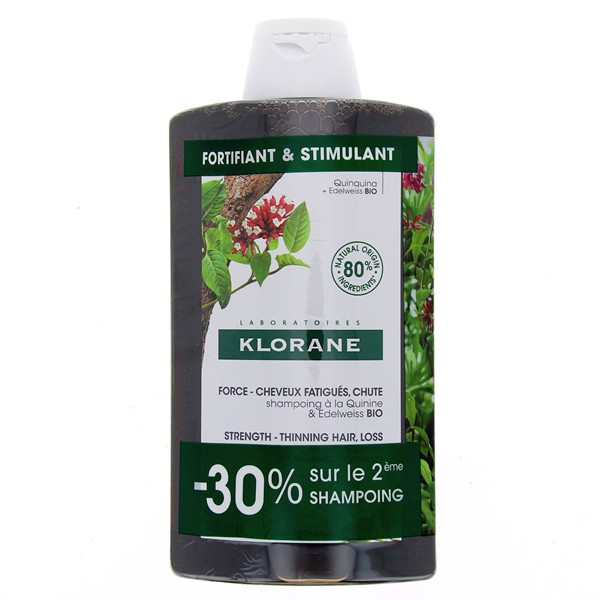 Le shampoing Force à la Quinine & Edelweiss BIO Klorane est destiné aux cheveux fatigués et / ou en cas de chute de cheveux. Il est formulé avec 80 % d'ingrédients d'origine naturelle pour respecter le cheveux. Ce shampoing va aider à redonner force et vigueur aux cheveux ainsi qu'à stimuler leur croissance.