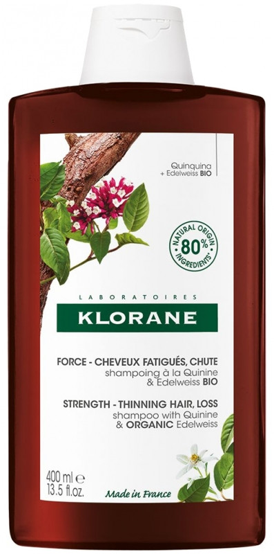 Le shampoing Force à la Quinine & Edelweiss BIO Klorane est destiné aux cheveux fatigués et / ou en cas de chute de cheveux. Il est formulé avec 80 % d'ingrédients d'origine naturelle pour respecter le cheveux. Ce shampoing va aider à redonner force et vigueur aux cheveux ainsi qu'à stimuler leur croissance.