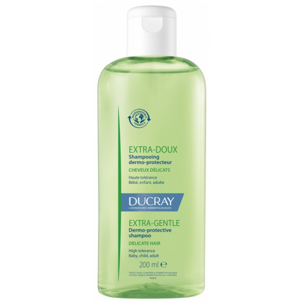 Le shampooing dermo-protecteur Extra-doux des laboratoires Ducray est tout indiqué pour l'hygiène capillaire quotidienne des cheveux normaux et délicats. Ce shampooing cristal au parfum agréable convient parfaitement à toute la famille. Ses principes actifs contribuent à rendre les cheveux plus disciplinés, plus vigoureux, plus souples, plus beaux et plus brillants. De plus, ils respectent le cuir chevelu. Ce produit est également disponible en flacon pompe de 400 ml, en flacon capsule de 400 ml et en tube de 100 ml.