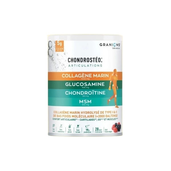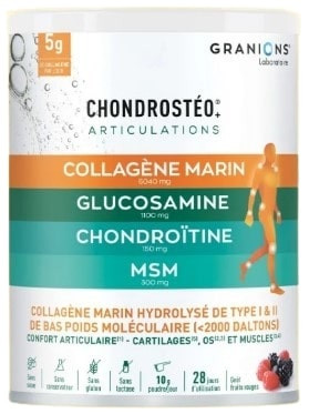 Chondrostéo+ Articulations Collagène Marin est un complément alimentaire dédié au confort articulaire. Il s’adresse aux personnes ayant un mauvais fonctionnement articulaire : genoux, hanches, dos, etc. Il est développé avec une nouvelle formule à base d’actifs rigoureusement sélectionnés. Ainsi, il permet d’aider à maintenir un fonctionnement normal des articulations : cartilages, os, tendons et muscles.