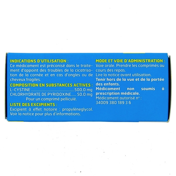 Cystine B6 Bailleul est un médicament préconisé en cas de cheveux ou d'ongles fragiles et de troubles de la cicatrisation de la cornée.