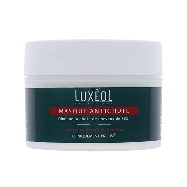 Le masque Antichute de Luxéol, enrichi en extrait de Kératine, s'utilise pour diminuer la chute de cheveux de 38 % tout en leur apportant volume et brillance.