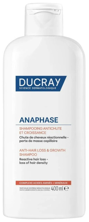 Anaphase Shampooing Antichute et Croissance du laboratoire Ducray est recommandé en cas de chute de cheveux réactionnelle et de perte de masse capillaire.