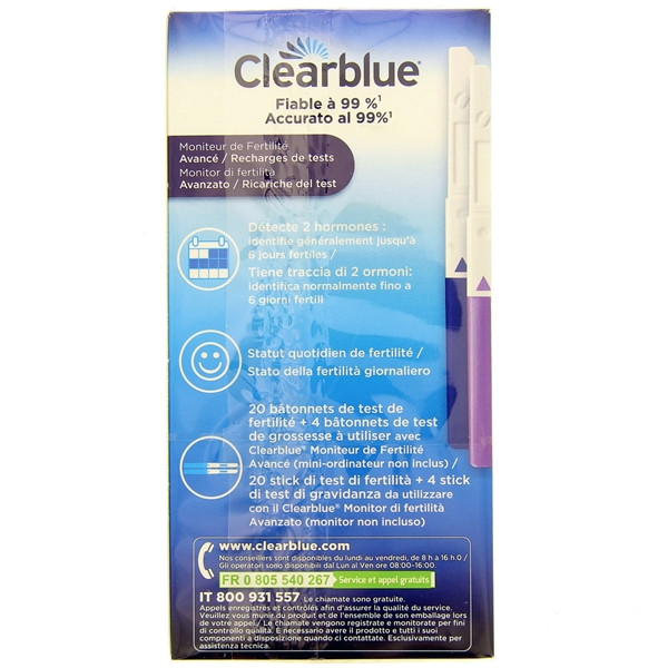 La recharge est conçue pour être utilisée exclusivement avec le Moniteur de Fertilité Avancé de Clearblue. Il s’agit, entre autres, d’un dispositif qui détecte les changements dans la concentration des hormones dans les urines.
