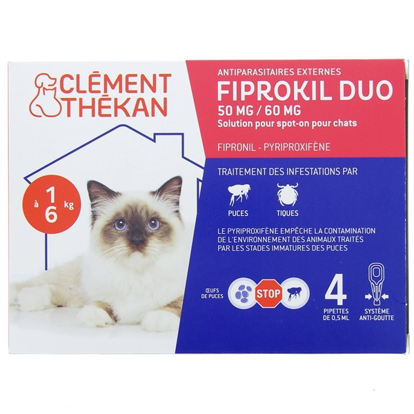 Fiprokil Duo Chats 50mg/60mg x4 pipettes Clément T