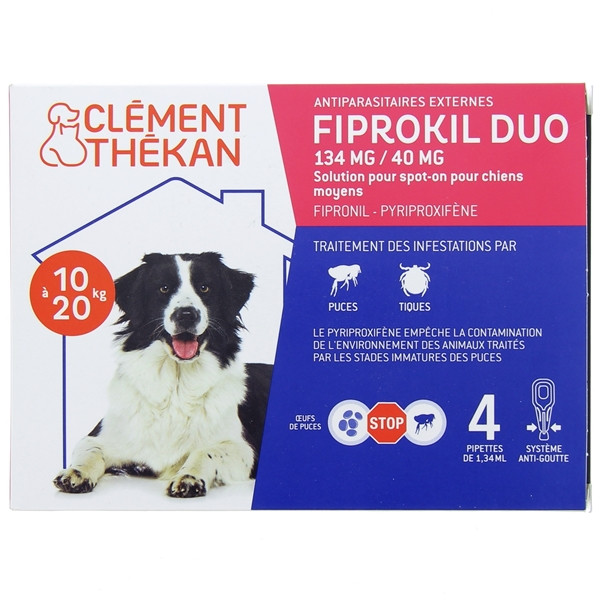 Fiprokil Duo Chiens Moyens 134mg/40mg x4 pipettes