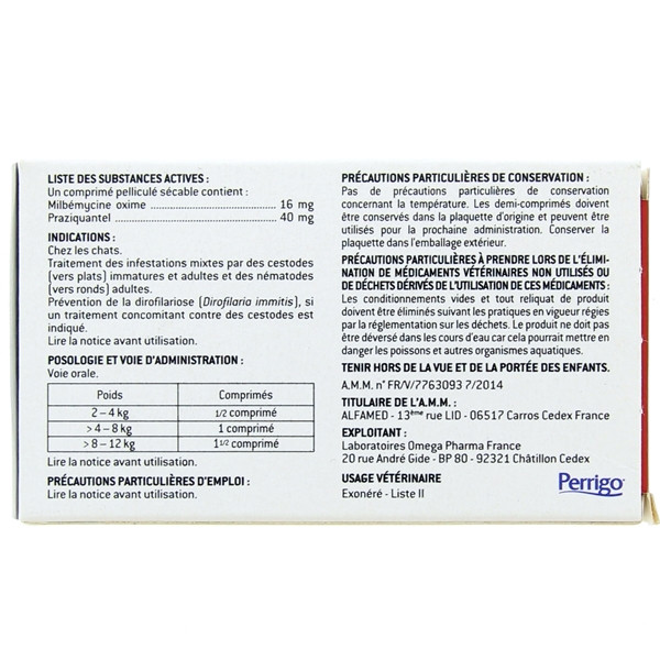 - Contre-indications : chatons de moins de 6 semaines ou pesant moins de 0,5 kg et hypersensibilité aux composants.