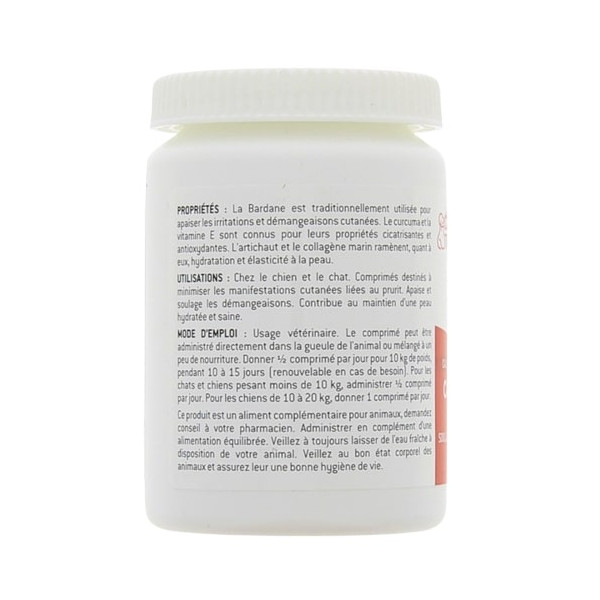 Calmocanil Tabs Chiens & Chats est formulé à base d’extrait de bardane, reconnue pour ses propriétés anti-inflammatoires. Il s’agit d’un ingrédient qui apporte une sensation d’apaisement, notamment en agissant directement sur le prurit. Ce trouble cutané se manifeste par des démangeaisons légères ou sévères causées par des infestations de puces, de tiques ou encore par des allergies. Les composants de ces comprimés viennent alors inhiber la réaction immunitaire incitant votre animal de compagnie à se gratter de manière excessive.