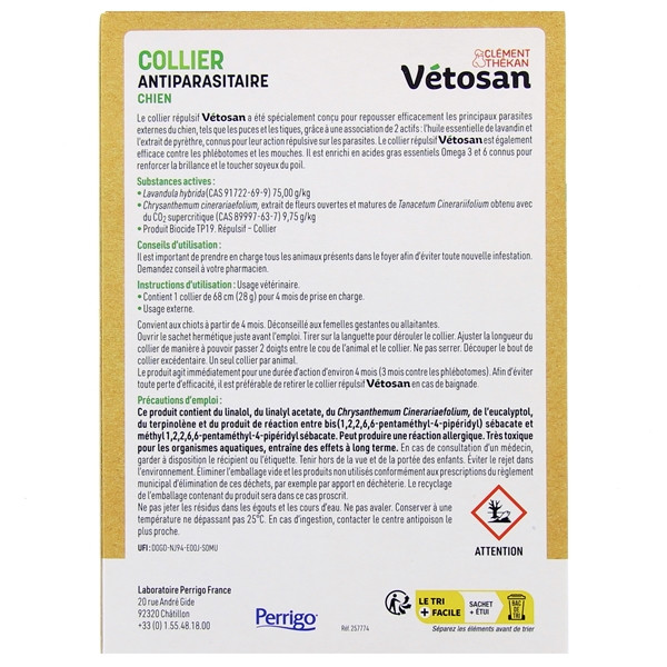 Vétosan Collier Répulsif Chien 68cm Clément Thékan