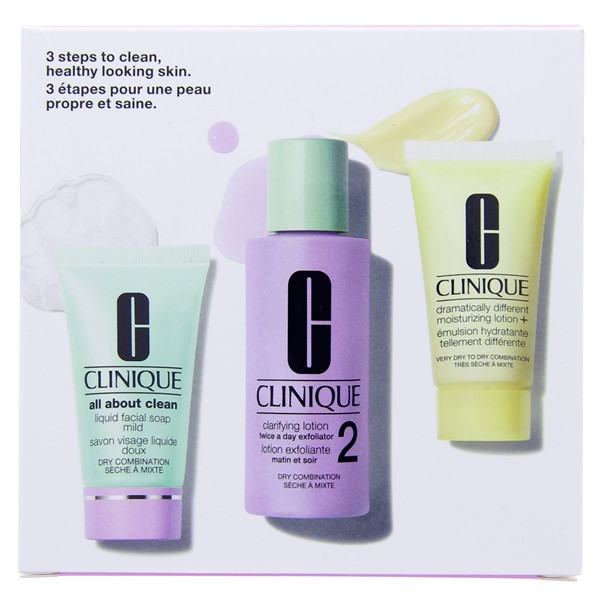 All About Clean Kit Découverte Peau sèche à mixte du laboratoire Clinique regroupe 3 produits essentiels pour une peau propre et saine. Vous trouverez dans ce kit un savon liquide, une lotion exfoliante et une émulsion hydratante.