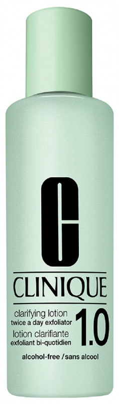 Lotion Clarifiante Exfoliant 1.0 Bi-quotidien du laboratoire Clinique idéale pour les peaux très sèches à sèche mais convient aussi à tous les types de peau. Ce soin exfoliant élimine efficacement et en douceur les impuretés. Ainsi, le grain de peau est affiné et la peau retrouve une douceur et un confort.