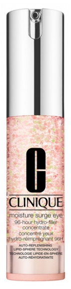 Moisture Surge Concentré Yeux Hydro-réimprégnant 96 h du laboratoire Clinique permet d'hydrater intensément et durablement le contour de l'œil afin de repulper la peau et d'atténuer les rides et ridules. Grâce à ce soin, retrouvez un regard éclatant.