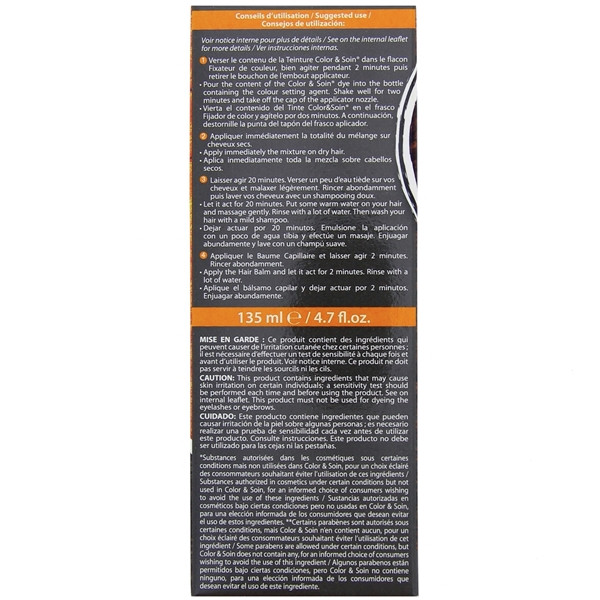 Pour vos envies de beauté, le laboratoire Les 3 chênes propose le soin coloration permanente pour cheveux : Color & Soin. Les pigments purs qui constituent ces produits de coloration teignent l'ensemble de la chevelure en couvrant efficacement les cheveux blancs. Composé d'un complexe d'huiles essentielles et de protéines végétales, le soin rend les cheveux soyeux, et éclatants. Ils retrouvent brillance et souplesses. Recommandé par les dermatologues, le soin coloration Soin & Color est formulé pour minimiser les risques d'allergies ou d'irritations. Ce soin est disponible en étui comprenant : un flacon 60 ml de teinture, un flacon 60 ml de fixateur, un sachet 15 ml de baume pour les cheveux, une paire de gants et une notice explicative.