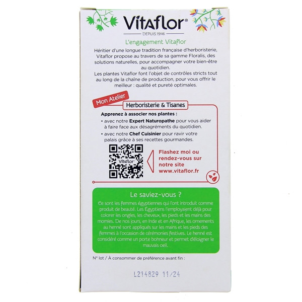 Pour des cheveux sublimes, sains et forts, Vitaflor vous recommande son soin capillaire au Henné naturel.