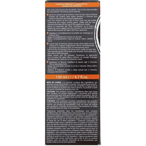 Pour vos envies de beauté, le laboratoire Les 3 chênes propose le soin coloration permanente pour cheveux : Color & Soin. Les pigments purs qui constituent ces produits de coloration teignent l'ensemble de la chevelure en couvrant efficacement les cheveux blancs. Composé d'un complexe d'huiles essentielles et de protéines végétales, le soin rend les cheveux soyeux, et éclatants. Ils retrouvent brillance et souplesses. Recommandé par les dermatologues, le soin coloration Soin & Color est formulé pour minimiser les risques d'allergies ou d'irritations. Ce soin est disponible en étui comprenant : un flacon 60 ml de teinture, un flacon 60 ml de fixateur, un sachet 15 ml de baume pour les cheveux, une paire de gants et une notice explicative.