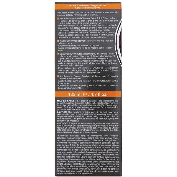 Color & Soin Blond terre cuivré 7C garantit une coloration permanente du cheveu grâce à une teneur en huiles essentielles et en protéines végétales. Disponible en flacon de 60 ml avec étui et fixateur de couleur.
