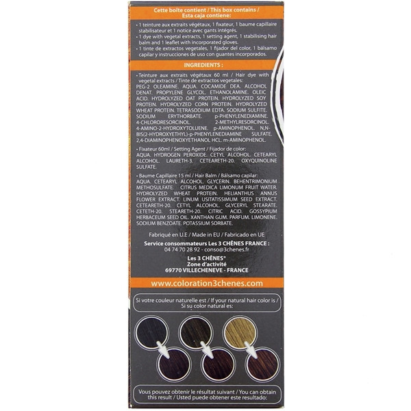 Pour une coloration permanente, couvrant la totalité des cheveux blancs, les Laboratoires Les 3 chênes développent pour vous Color & Soin Marron Glacé.