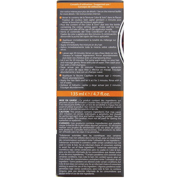 Pour un confort optimal de la chevelure, utilisez Color & Soin Marron Glacé 4A, composé d'huiles essentielles et de protéines végétales. Disponible en flacon de 60 ml de teinture aux extraits végétaux et un flacon fixateur de 60 ml.