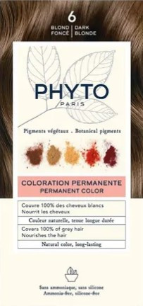 La coloration permanente de la gamme Phytocolor n°6 Blond Foncé contient plusieurs pigments végétaux aux propriétés hydratantes, protectrices et naturellement colorantes.